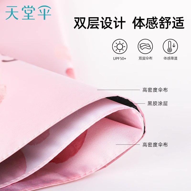 天堂伞黑胶防晒防紫外线遮阳伞轻巧便携卡通防晒晴雨伞两用男女士