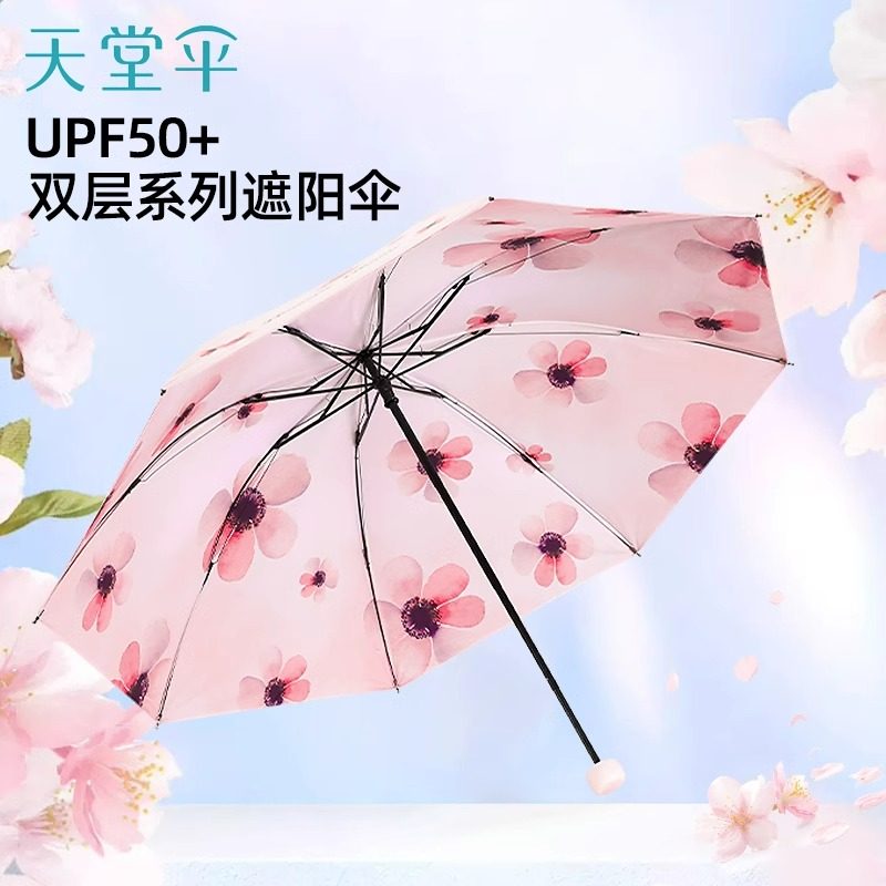 天堂伞双层伞晴雨两用伞黑胶太阳伞防晒伞防紫外线高级感遮阳伞女