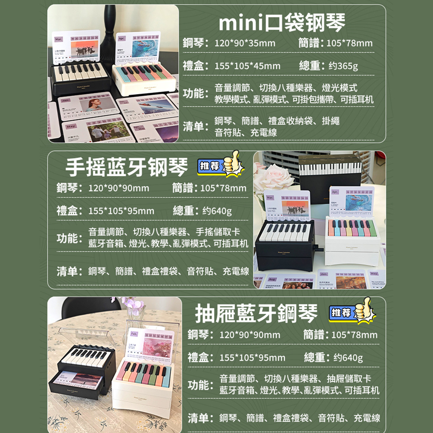 2026年新款张杰可弹奏的钢琴台历日历杰哥电子琴灯光蓝牙送人礼物