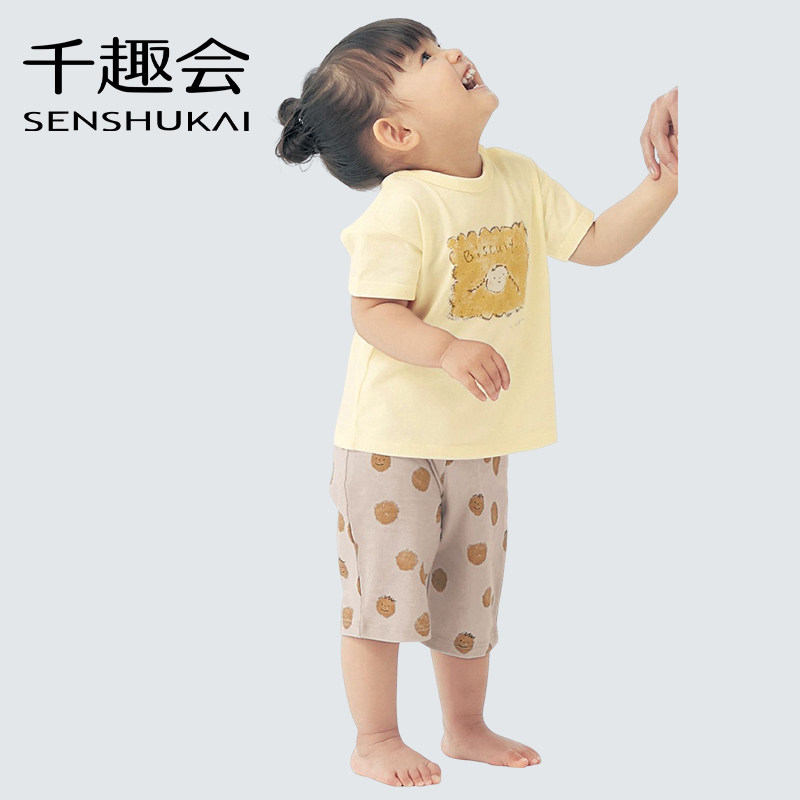 千趣会童装夏婴童宝宝童趣满印轻薄棉质中裤裤子