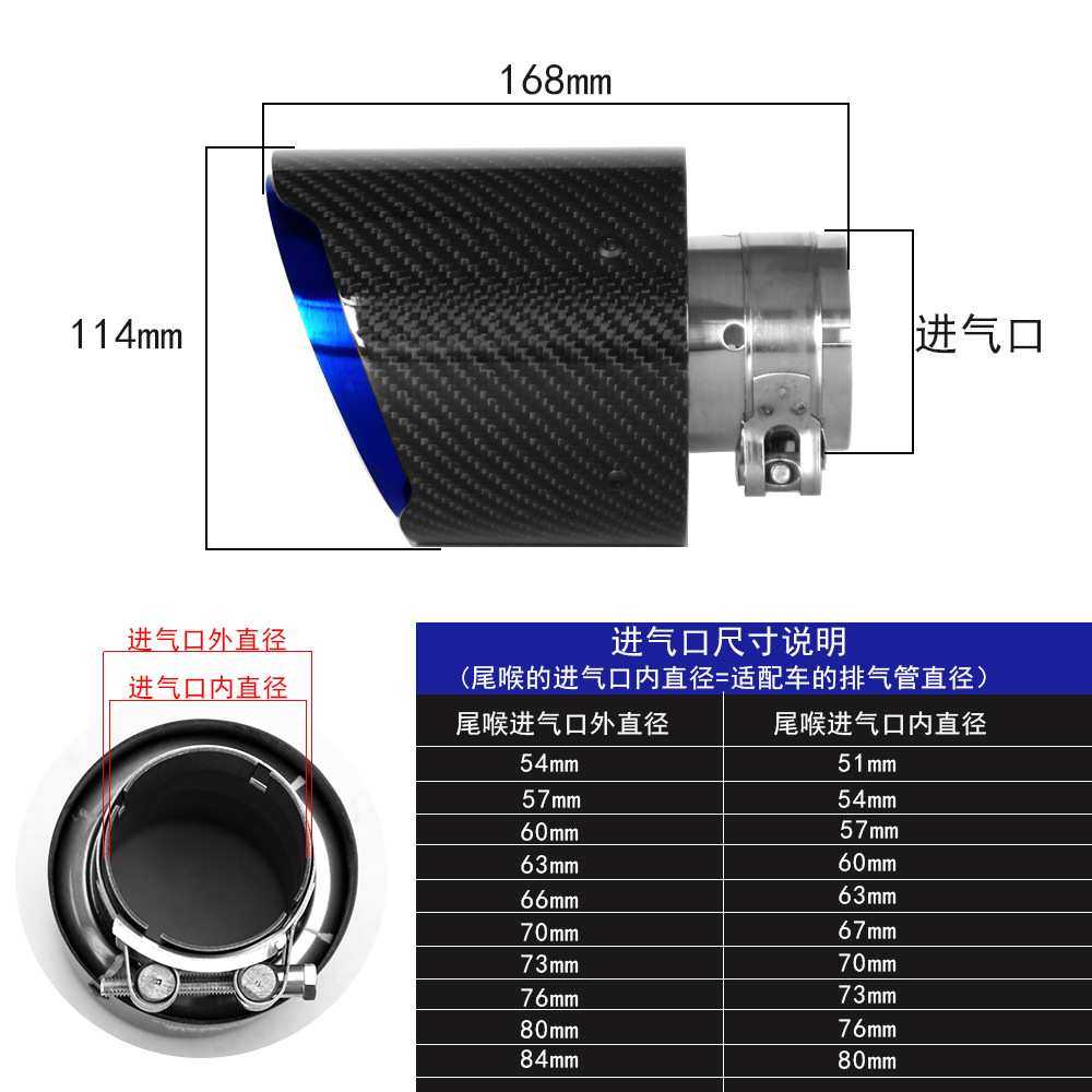 【烤蓝款】114mm大口径碳纤维尾喉厂家直供汽车排气改装通用尾喉
