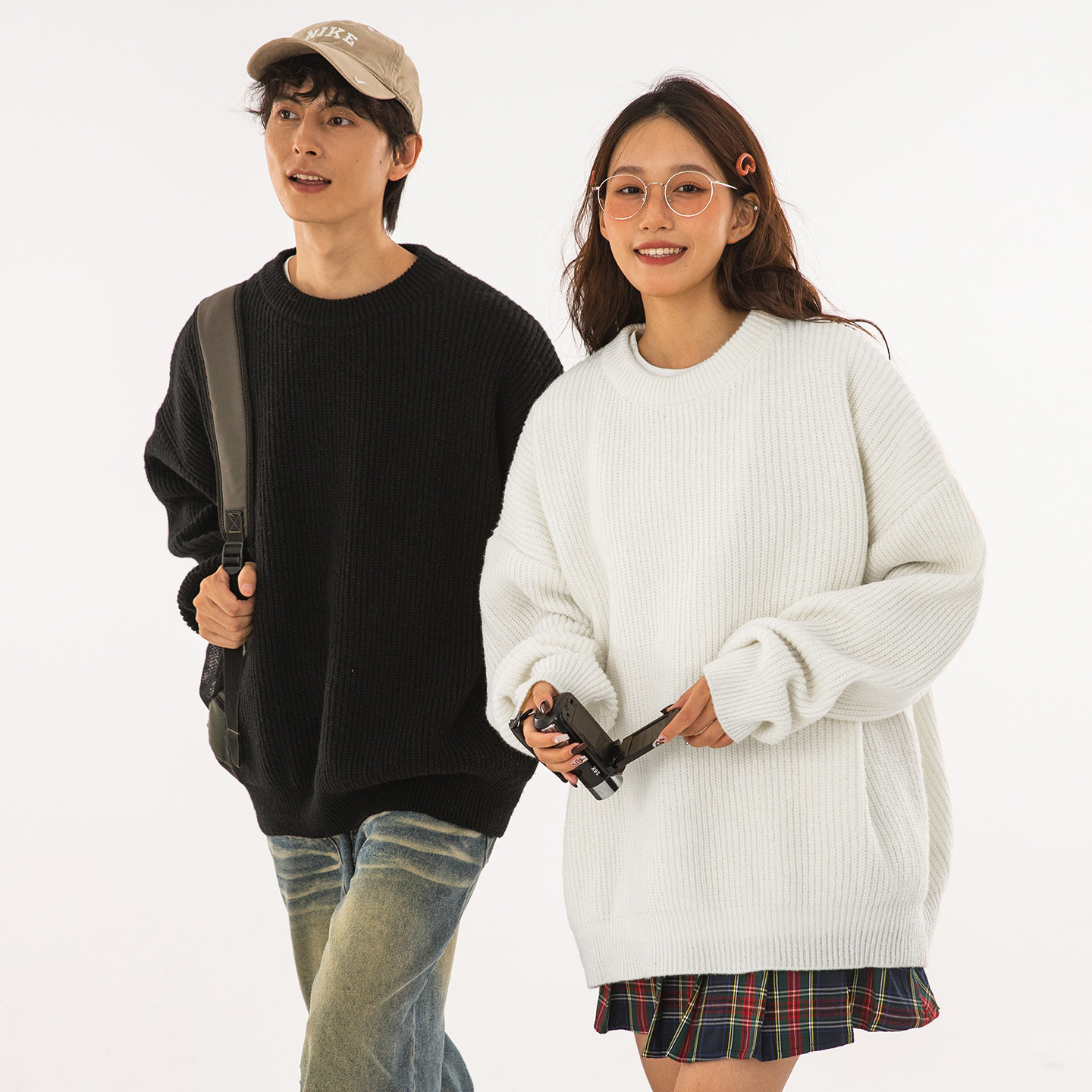 2025秋冬新款圆领情侣长袖毛衣打底衫