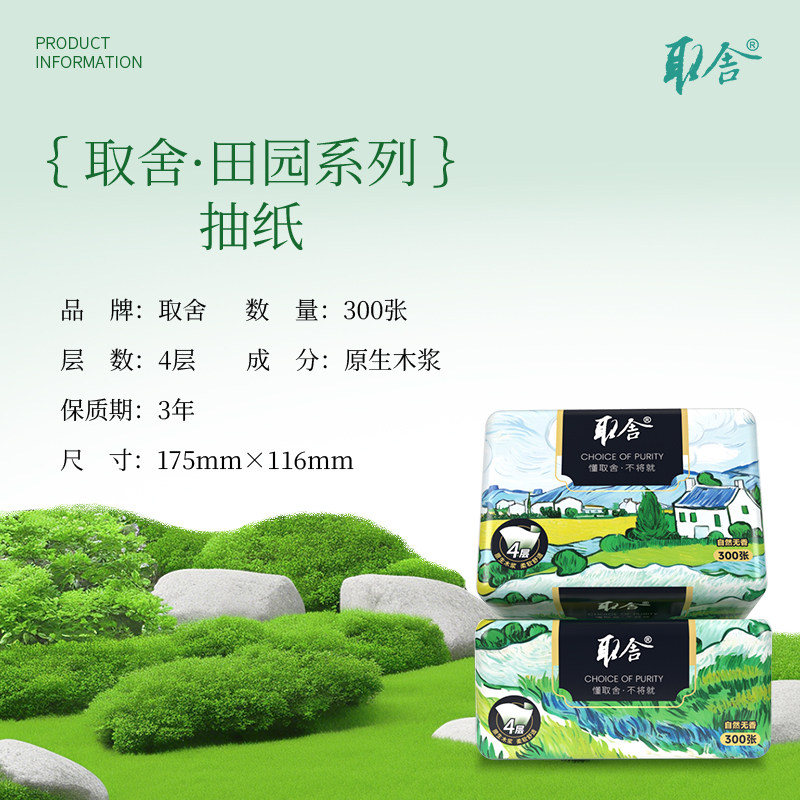 取舍油画抽纸300张高端餐巾纸商用可湿水面巾纸家用母婴儿纸巾2包
