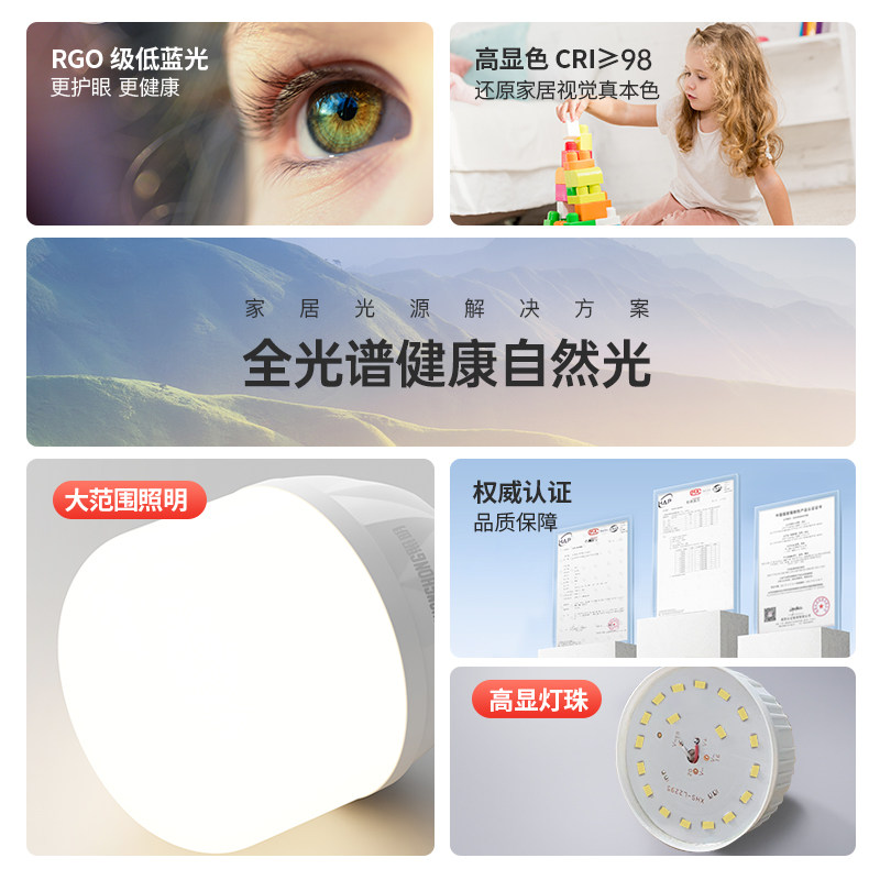 长虹照明全光谱led护眼灯泡学习专用超亮家用暖白光无频闪e27螺口