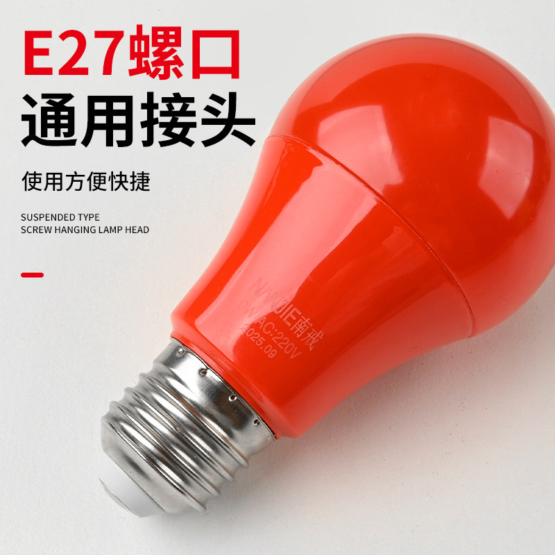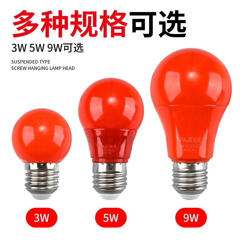 家用灯笼灯泡9W红色婚房球泡LED春节喜庆节能E27螺口控制照明防水