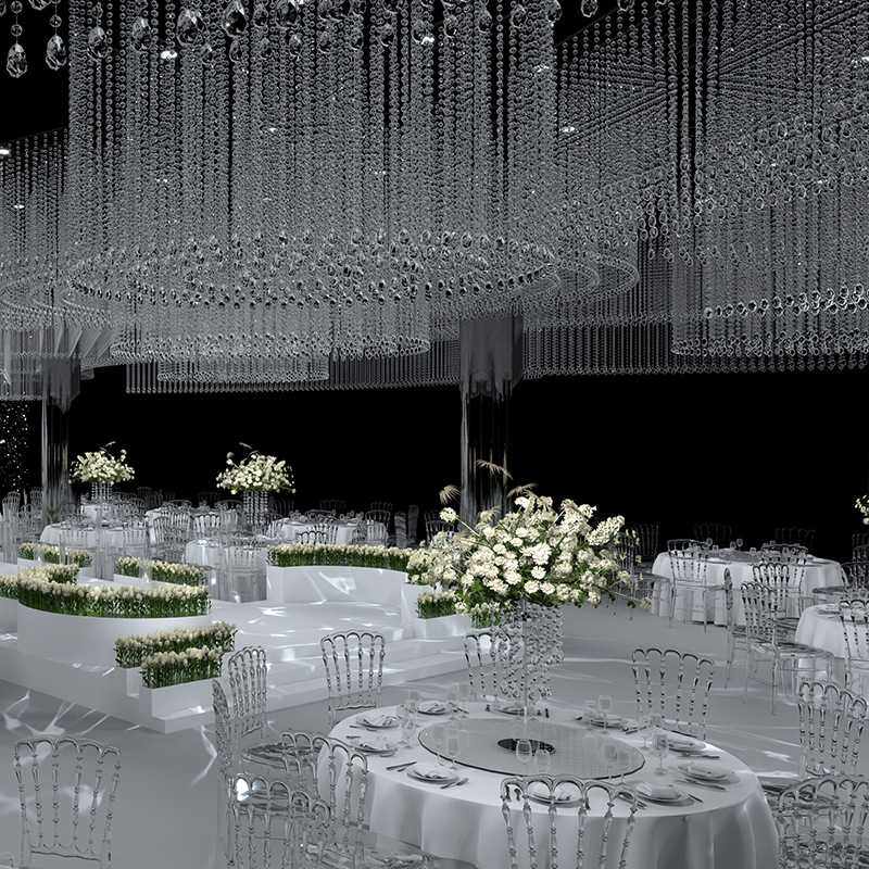 定制婚宴厅天花吊顶灯光艺术水晶珠帘装饰吊灯婚礼舞台背景灯具