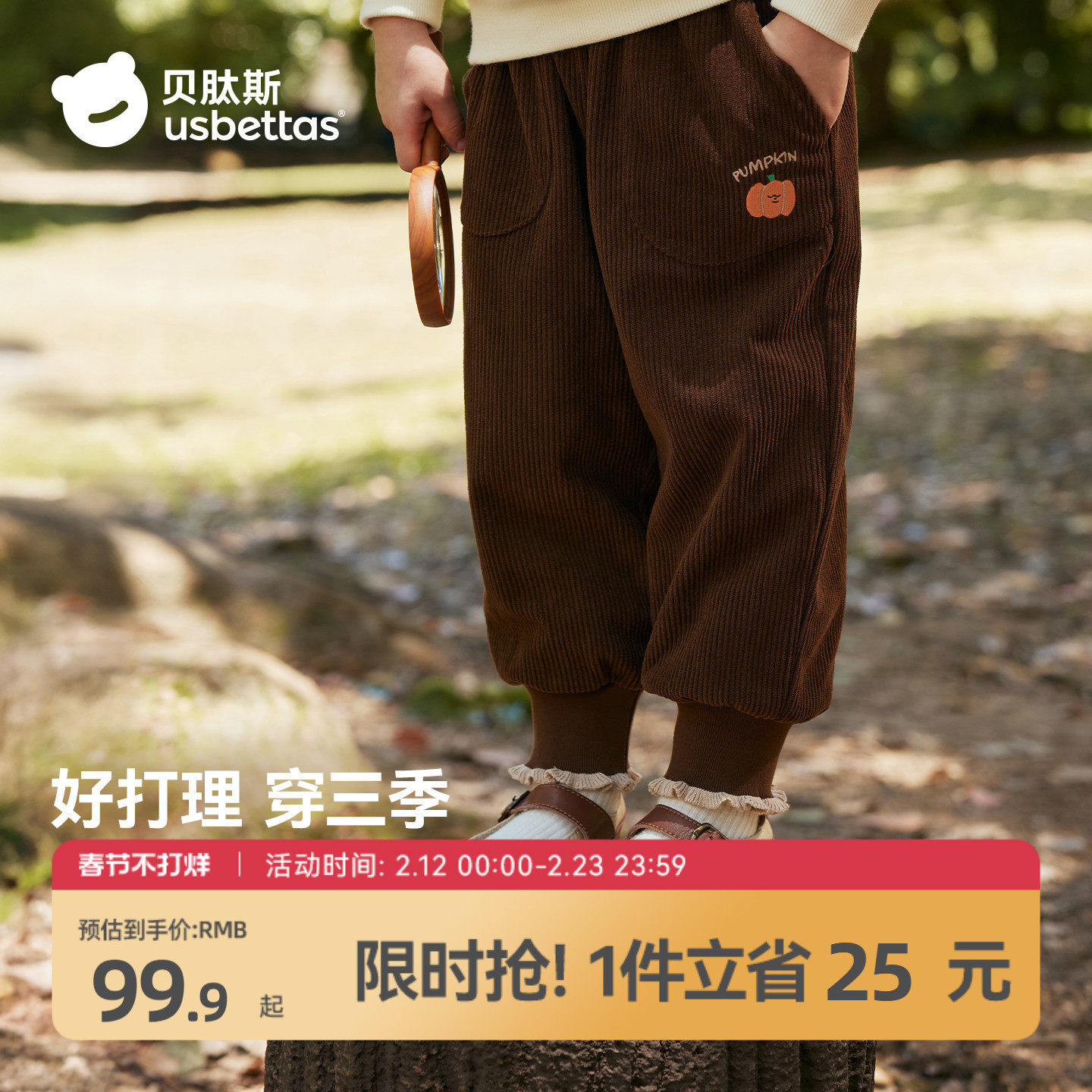 贝肽斯女童裤子秋冬加绒保暖长裤2026新款宝宝休闲卫裤木耳边童装