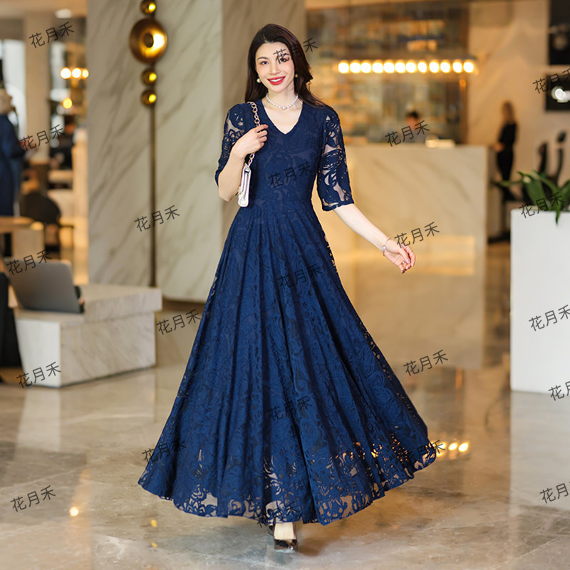 2025年春秋冬新款优雅气质大摆小个子连衣裙长裙雪纺裙沙滩裙子