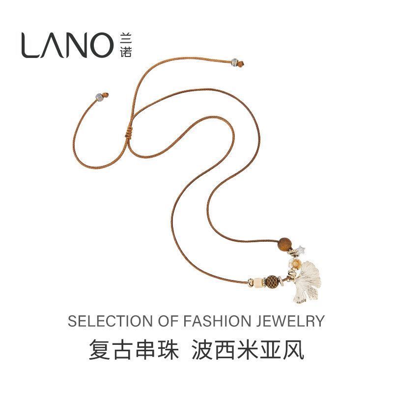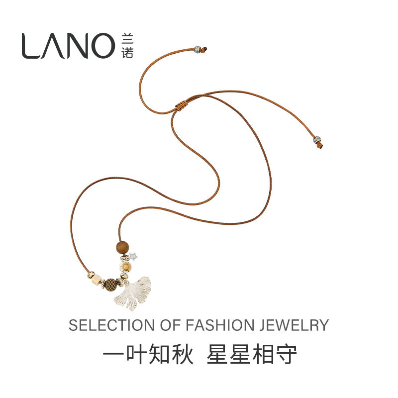 兰诺银杏叶吊坠项链女波西米亚风皮绳毛衣链2025新款小众设计配饰