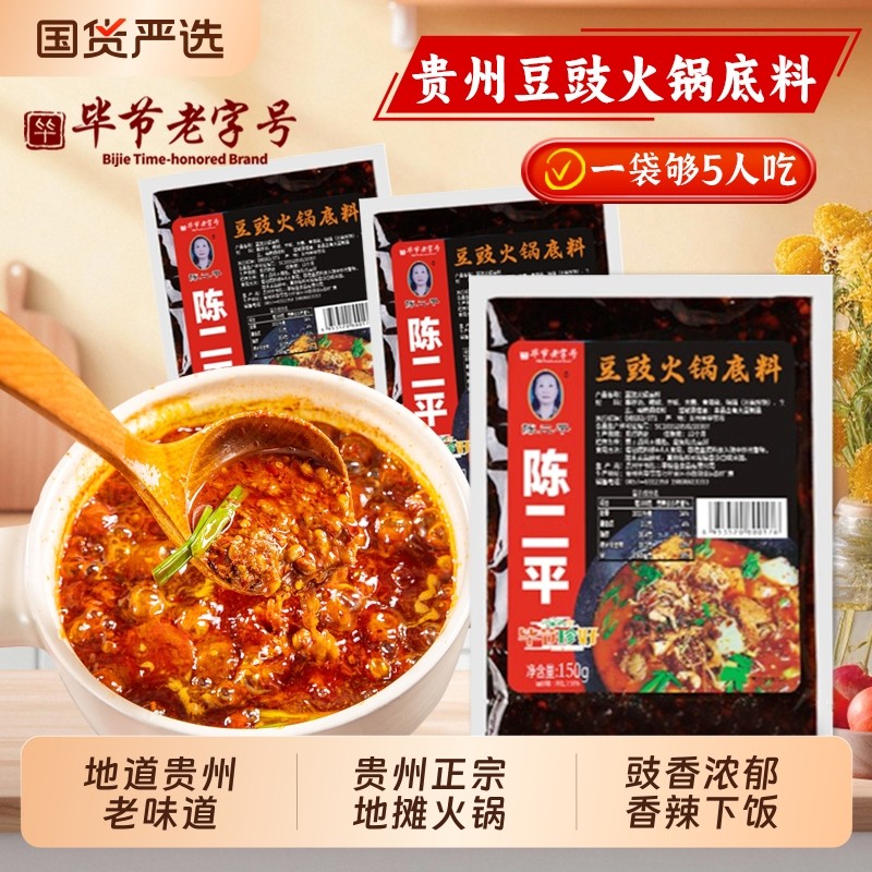 陈二平麻辣火锅底料贵州特产鲜香豆豉粑贵州毕节辣椒美食地摊网红