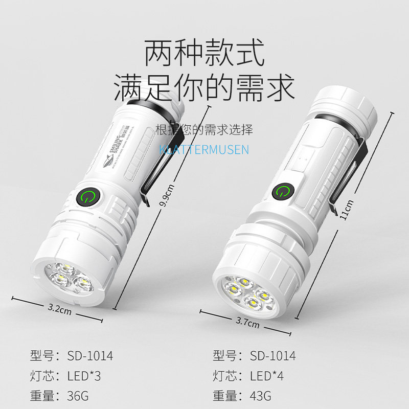 微笑鲨强光小手电筒便携迷你超亮照明灯长续航可充电家用户外耐用