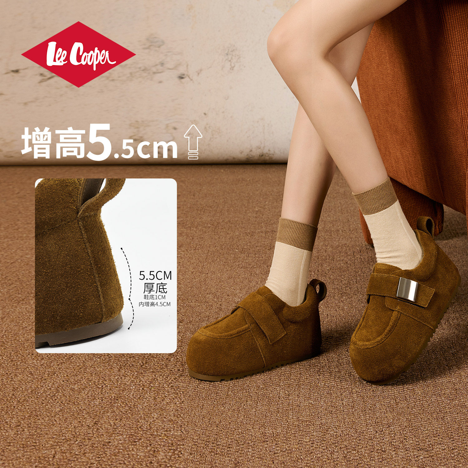 Lee Cooper厚底5.5CM勃肯鞋女2025年秋冬内增高小个子真皮博肯鞋