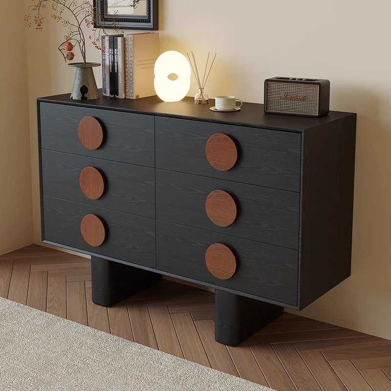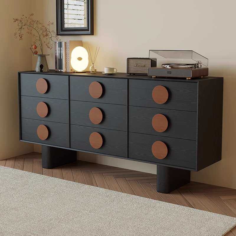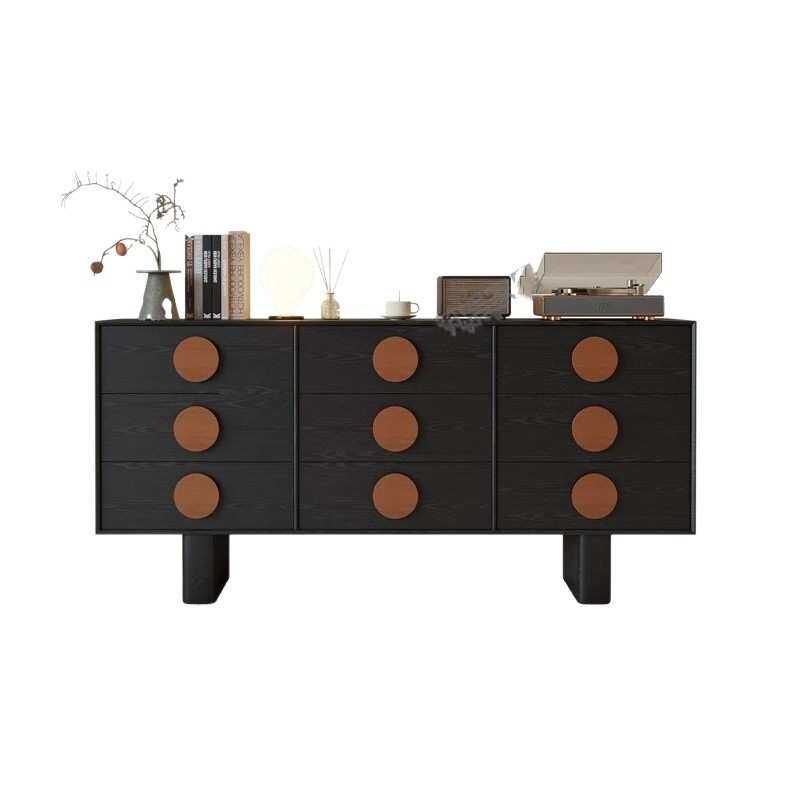 中古实木九斗柜电视柜法式复古黑色现代简约玄关柜客厅储物餐边柜