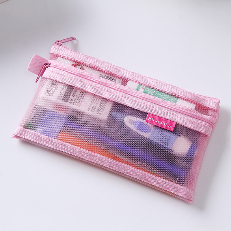 金华升创意笔袋文具袋化妆袋日韩风考试袋双层网纱袋文具收纳袋