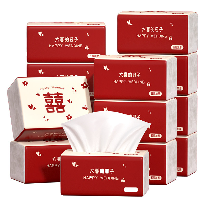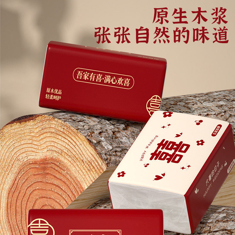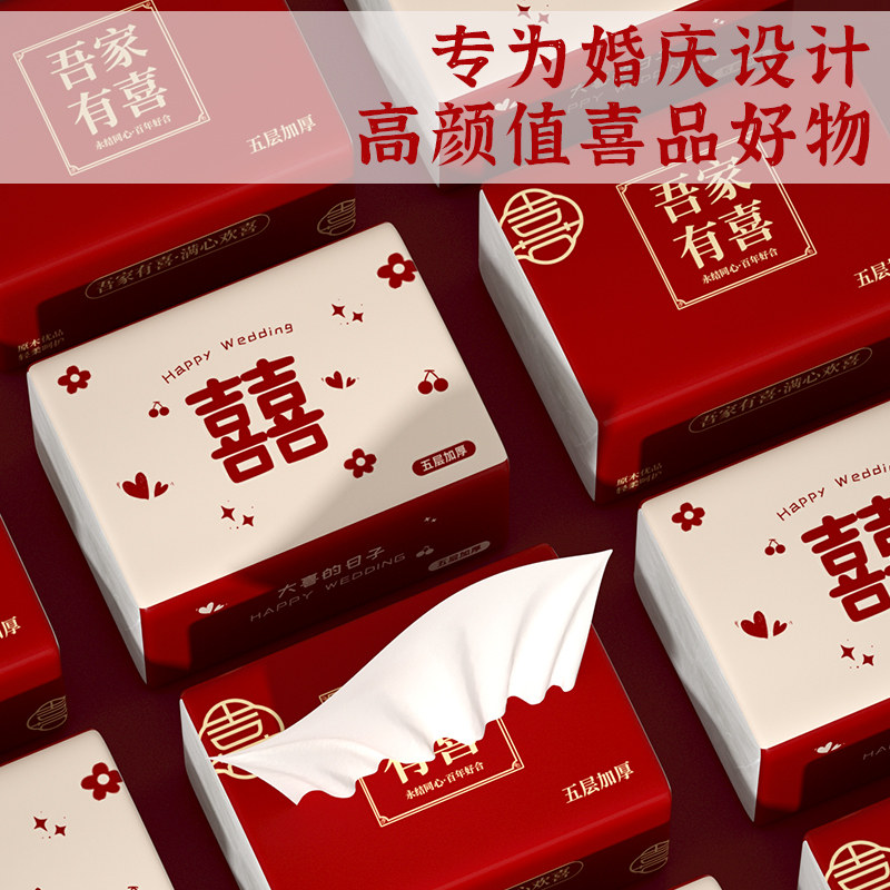 40包婚宴餐巾纸婚庆抽纸婚礼用纸卫生纸红色喜字纸巾抽纸整箱批发