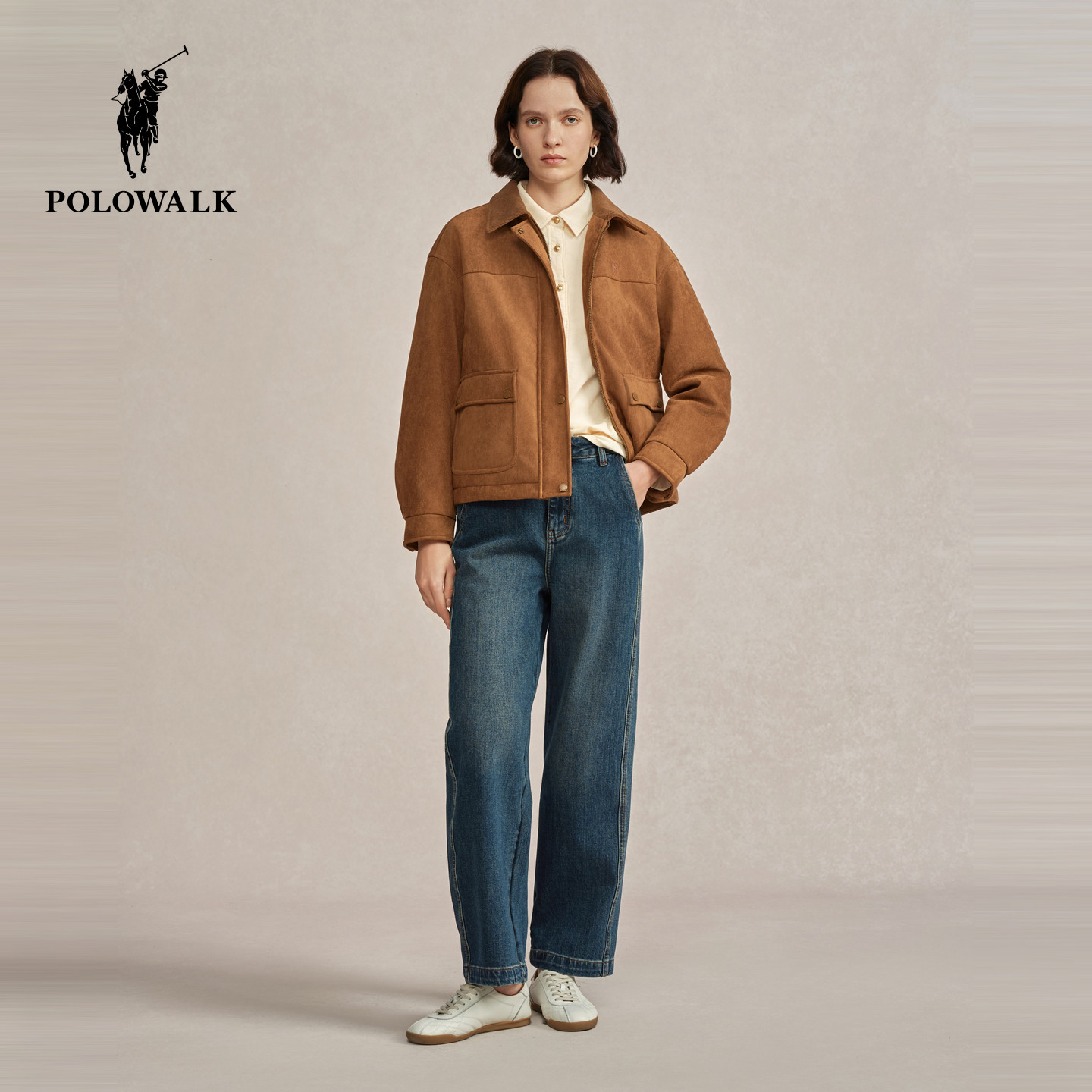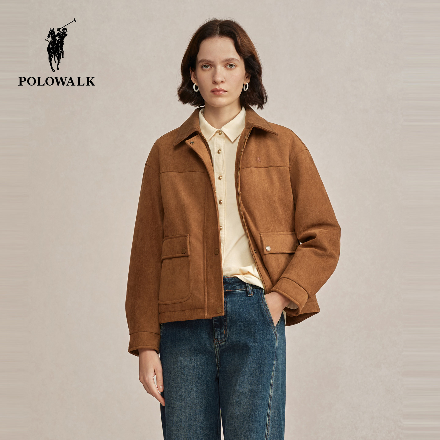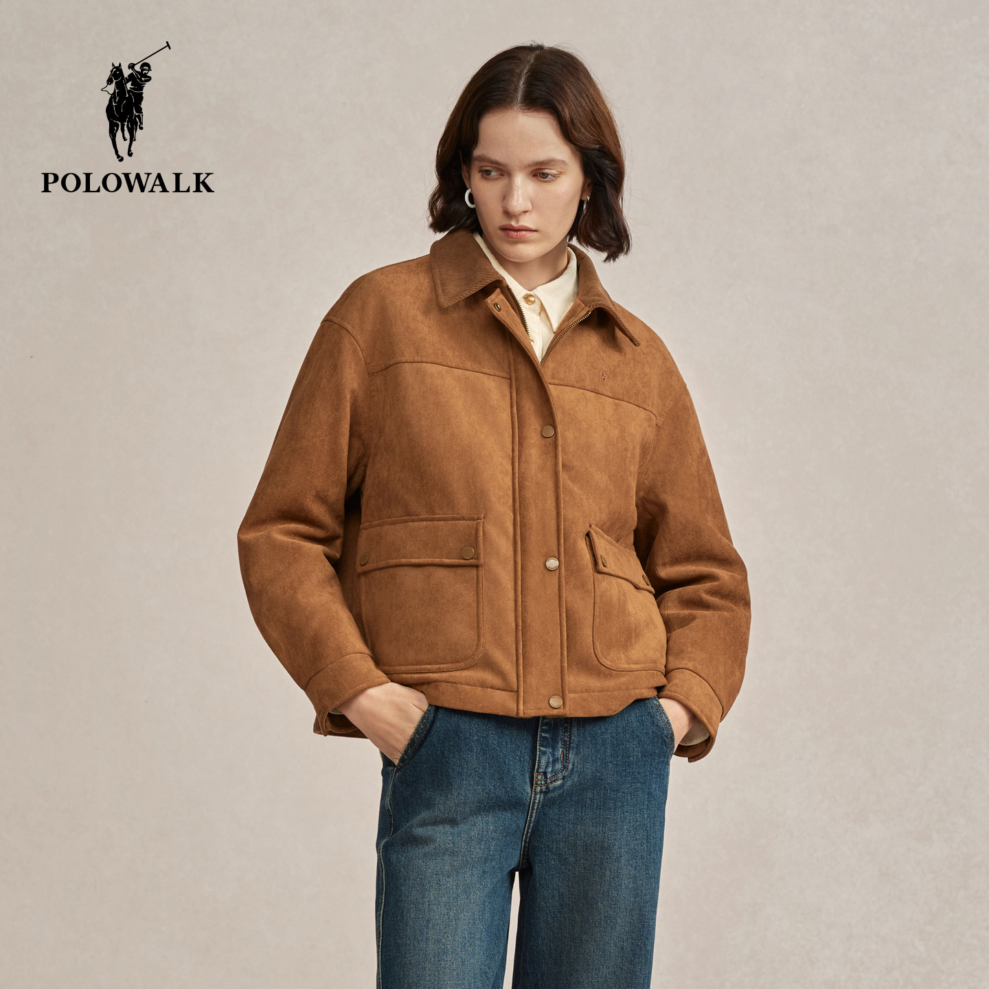 POLOWALK女装外套2025冬装新款保暖复古时尚棉服翻领外套女