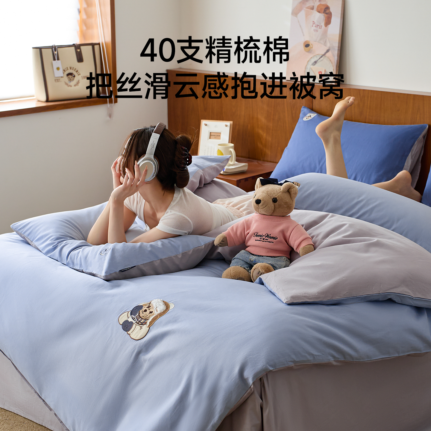 TeenieWeenie全棉水洗棉四件套100纯棉被套床单床笠款床上三件套4