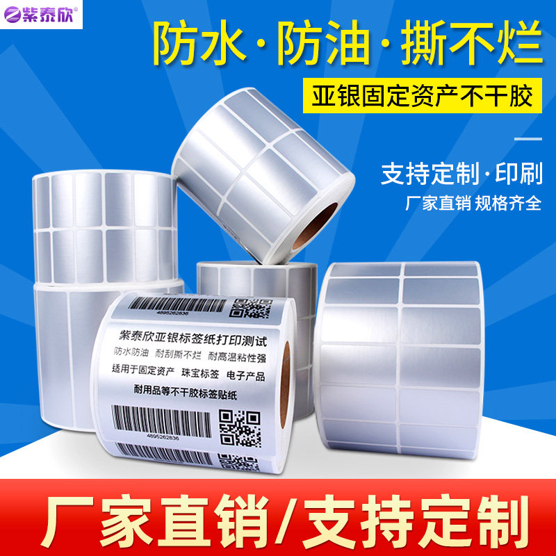 紫泰欣亚银标签纸亚银标签纸不干胶哑银标签纸亚银pet标签纸100*90*80*70*60*50*40*30*20P定制标签条码打印