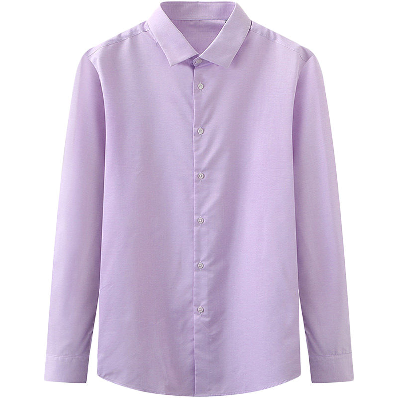 外贸大牌正品撤标尾货清仓男装上衣秋季纯色商务正装长袖衬衫浅紫