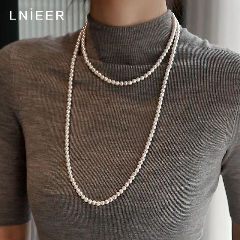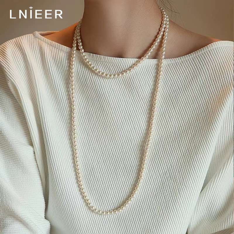 施家长款仿珍珠项链女轻奢小众高级感叠戴颈链爆款秋冬精致毛衣链