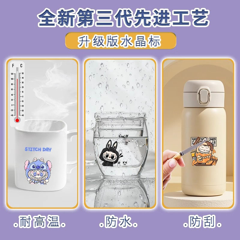 学生可洗装饰拉布布纹身贴防水卡通女生labubu可爱闪粉水印手臂贴