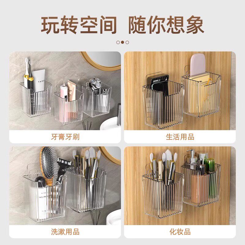浴室置物架卫生间洗漱台化妆品收纳免打孔壁挂厨房墙上调料收纳架
