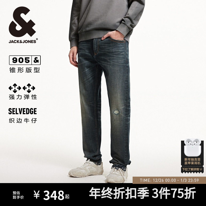 905杰克琼斯男装潮流行简约锥形破洞磨毛长裤子下装牛仔裤秋男款