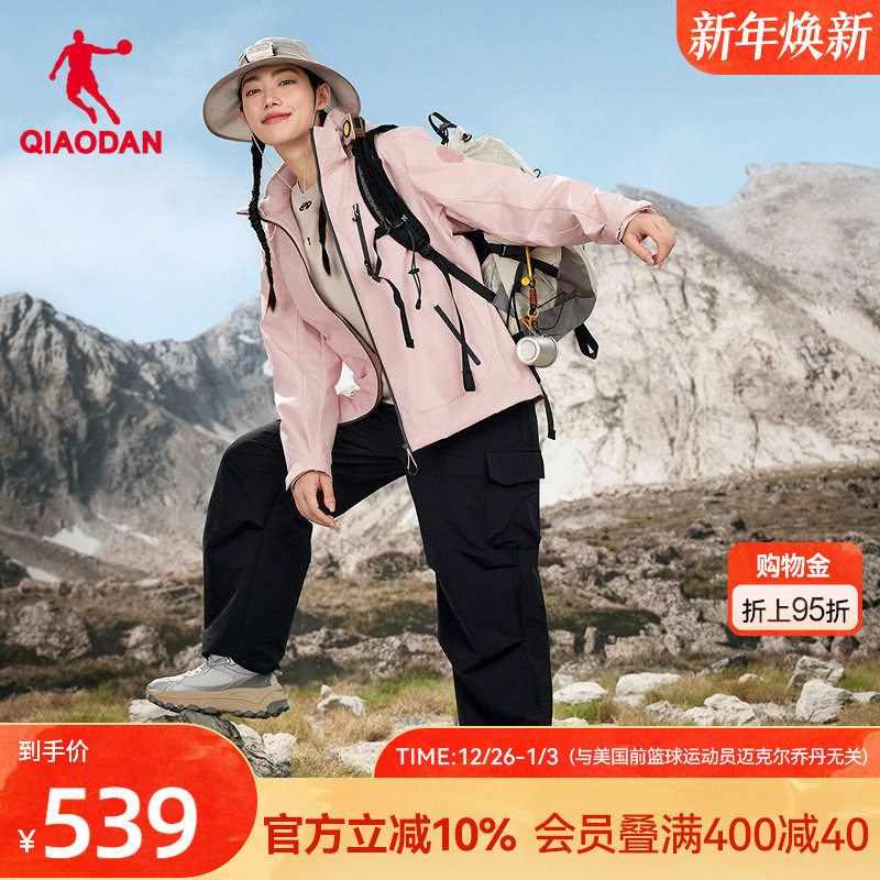 乔丹山神户外运动服男女款连帽防水外套防风保暖徒步登山风衣夹克