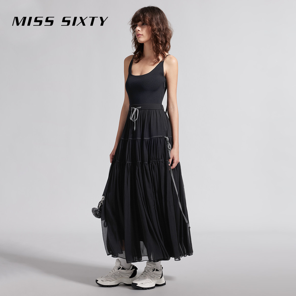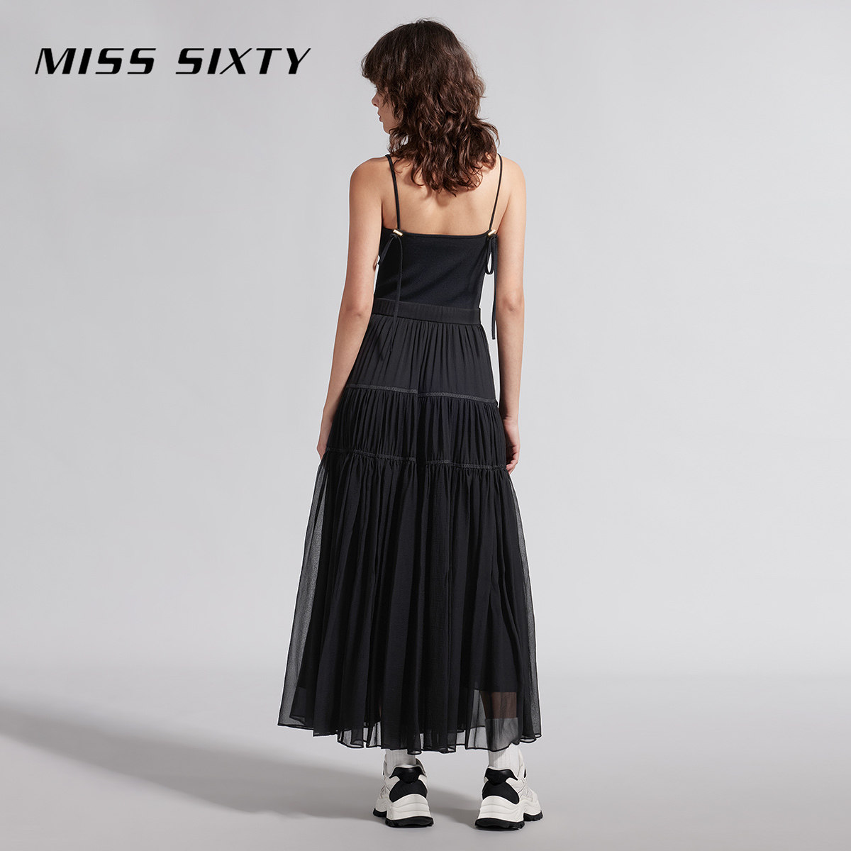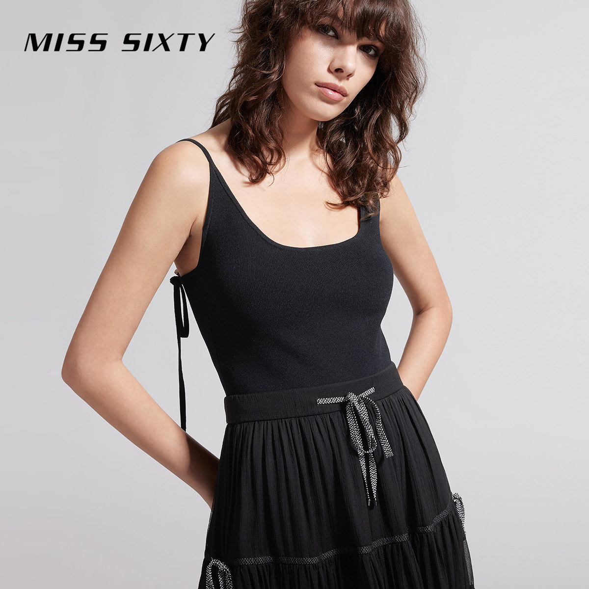 Miss Sixty含桑蚕丝可调吊带连身连衣裙法式小黑裙气质优雅
