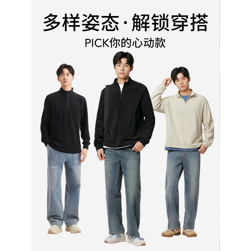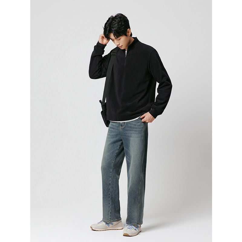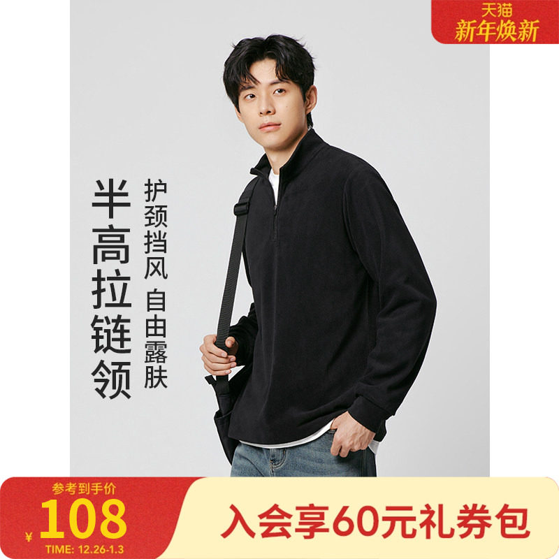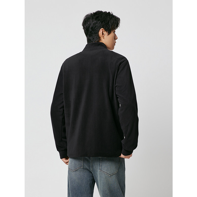 热风2025年冬季新款男士基本半拉链纯色长T简约百搭软糯亲肤