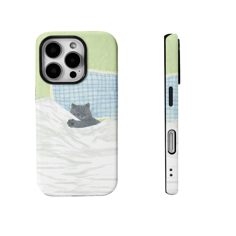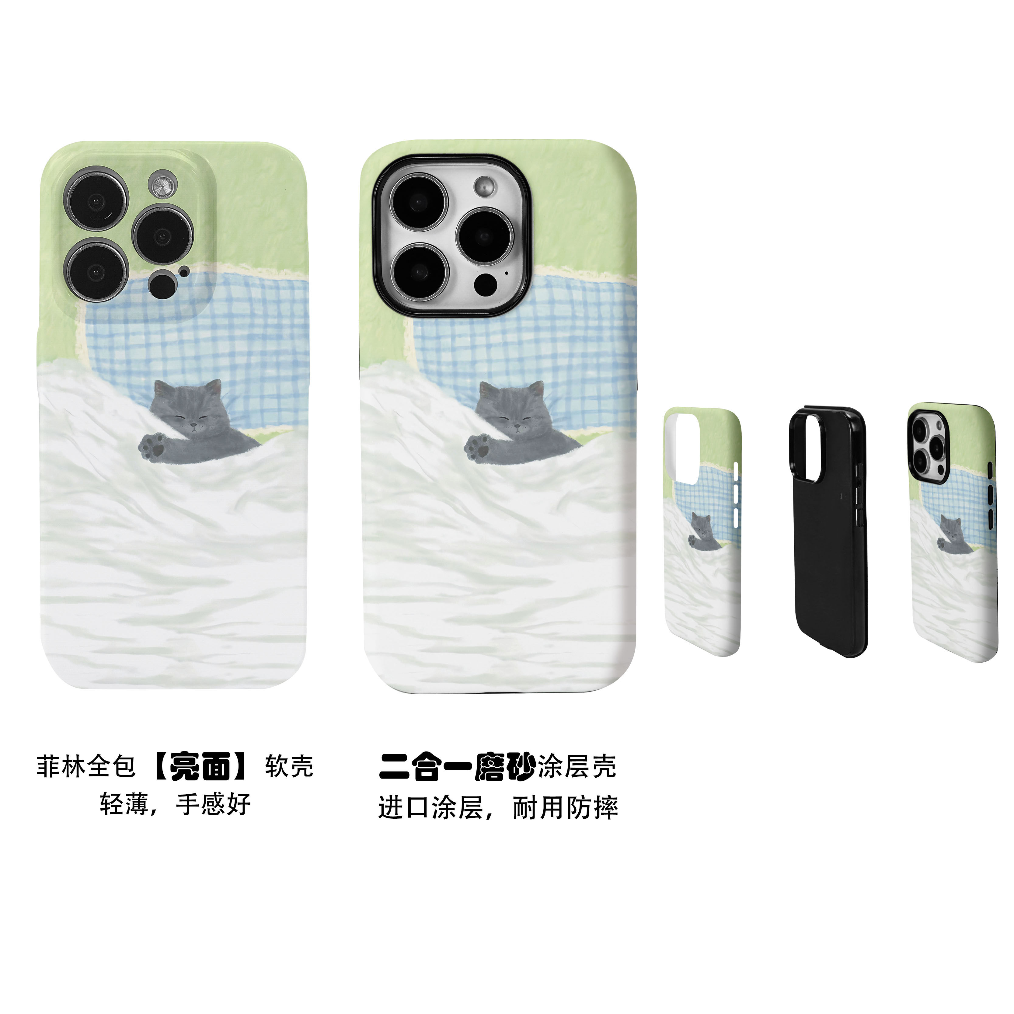 可爱盖被子睡觉的猫咪菲林二合一手机壳适用苹果17nova14华为p70mate60小米15opporen14ovivo荣耀300iPhone16