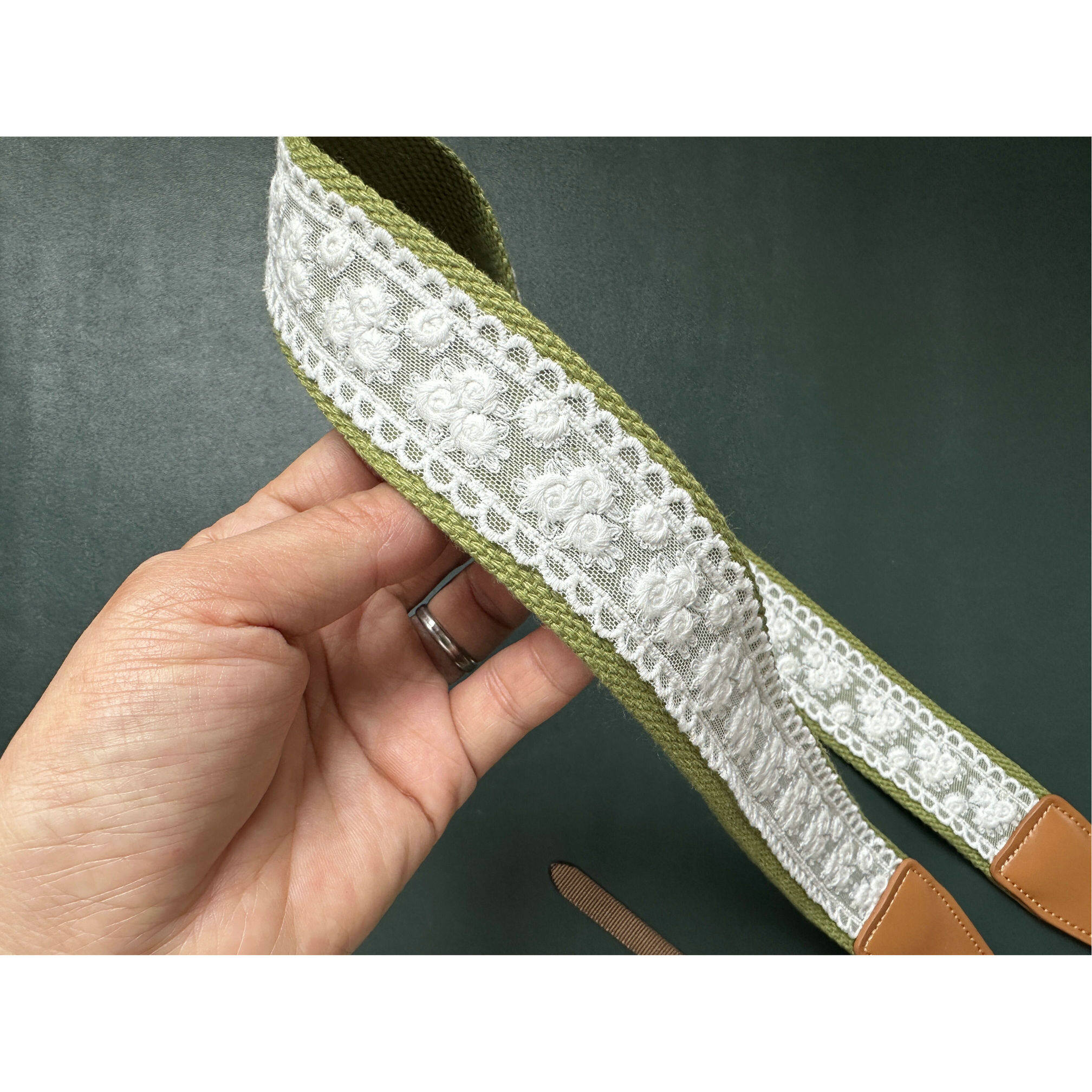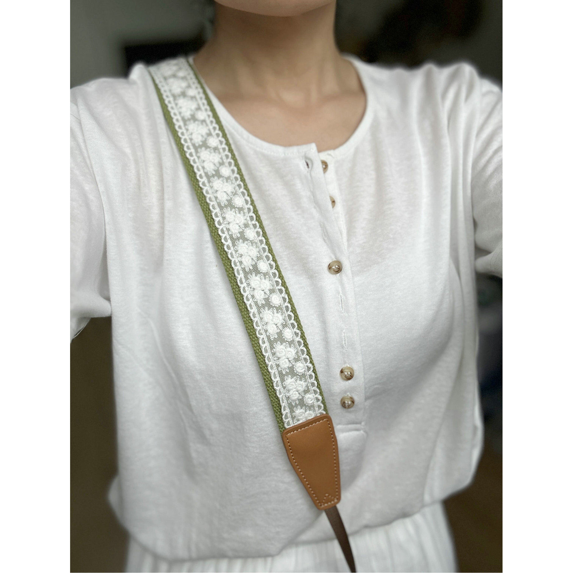 UNIKSTRAP原创手作牛油果和白蕾丝绝美通用斜跨相机背带相机肩带