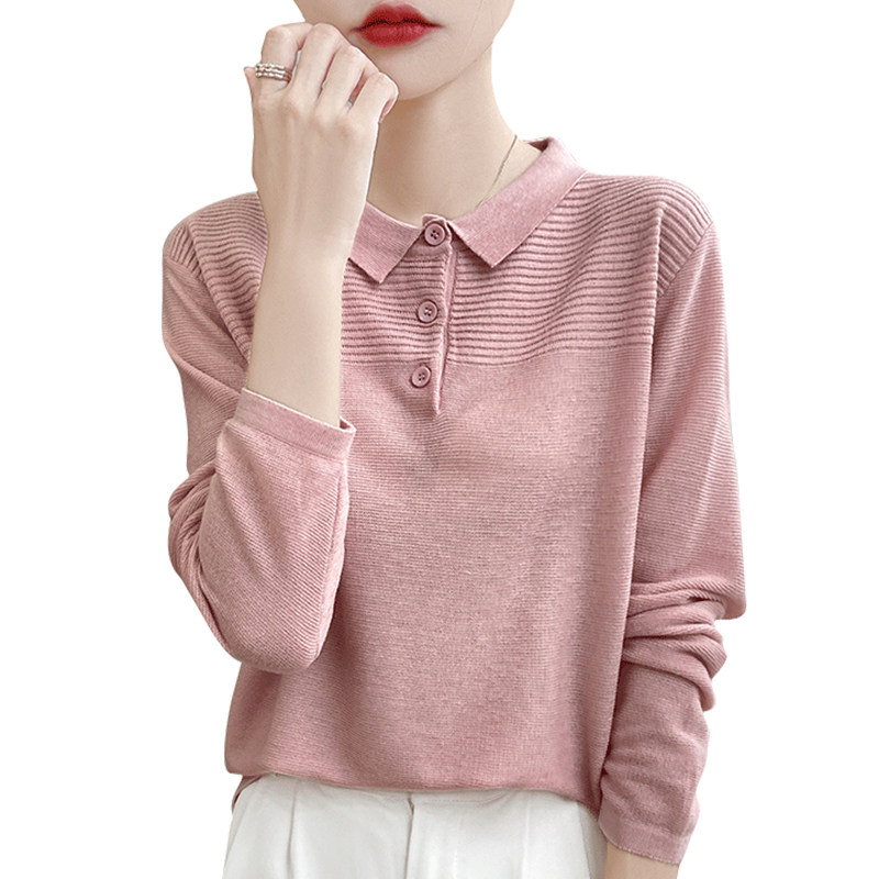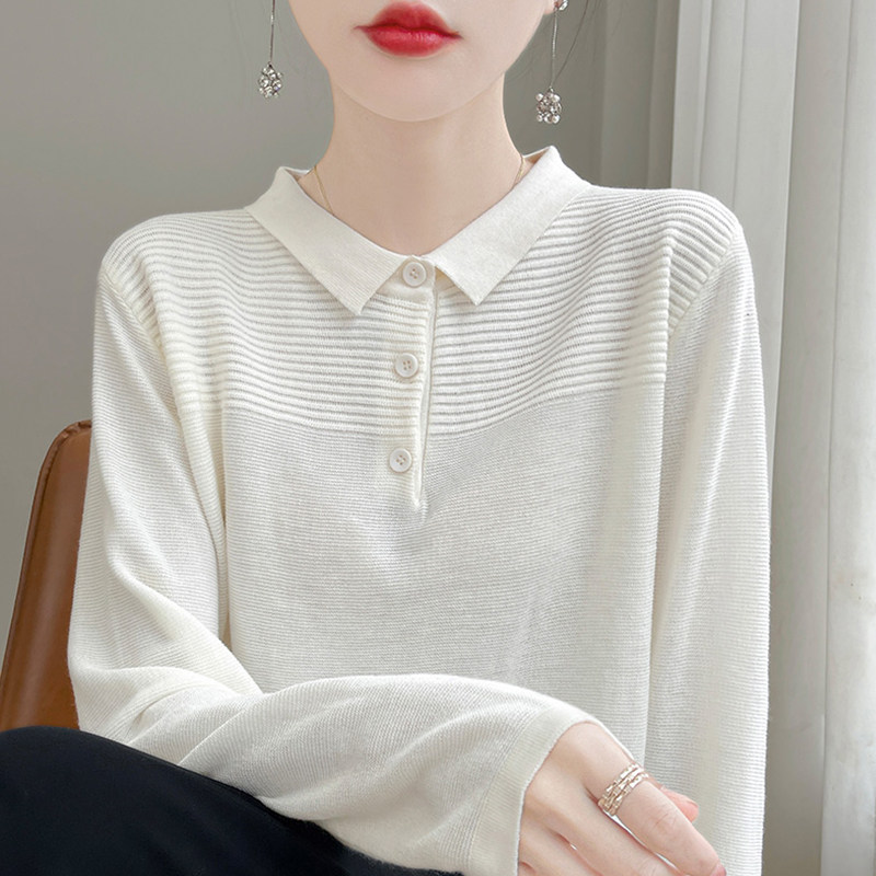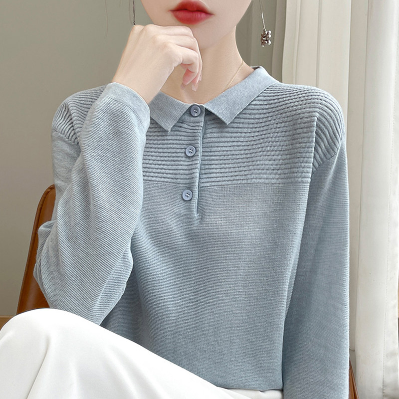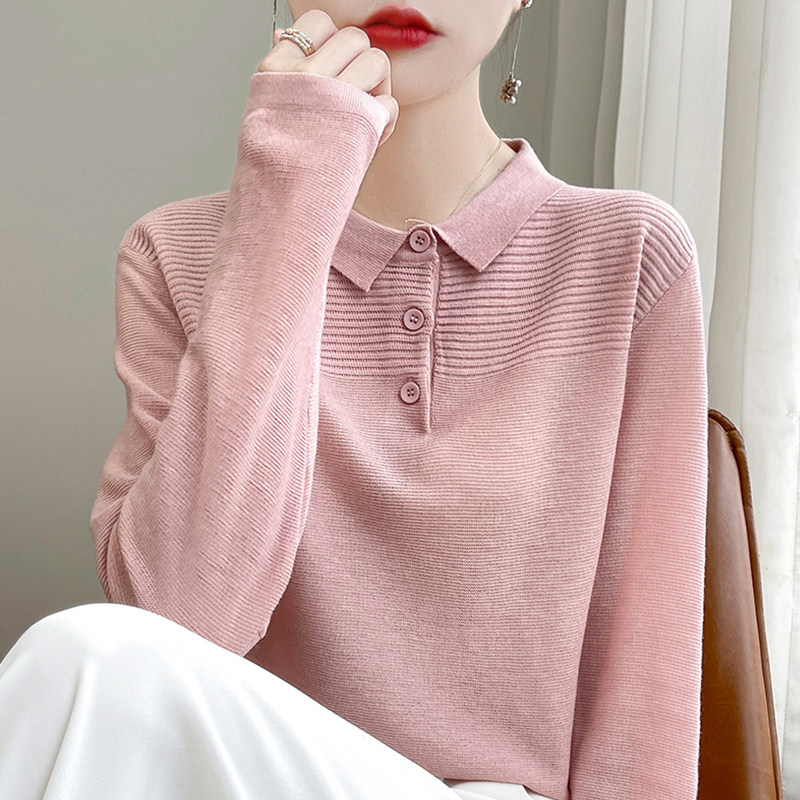 撤柜撤标(A)翻领针织打底衫女春秋流行内搭上衣洋气大码女装毛衣