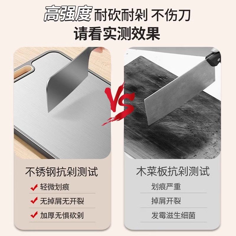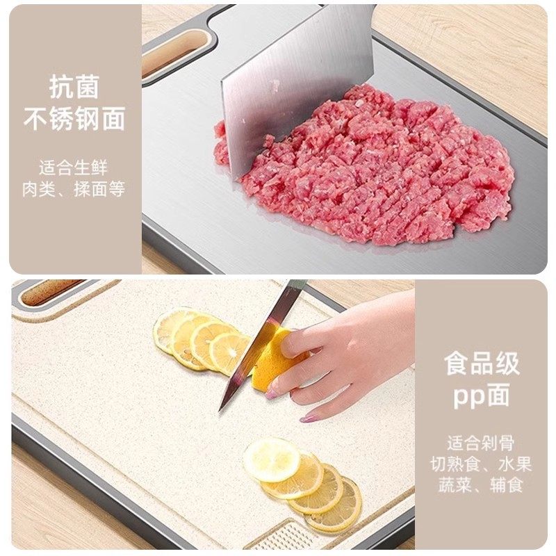 菜板家用抗菌防霉砧板水果砧板案板占粘板不锈钢双面麦秸秆切菜板