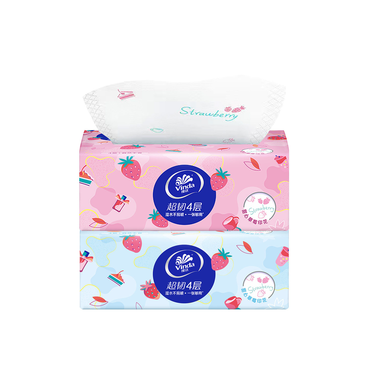 维达抽纸超韧甜心草莓印花面巾纸纸抽4层90抽擦手纸卫生纸