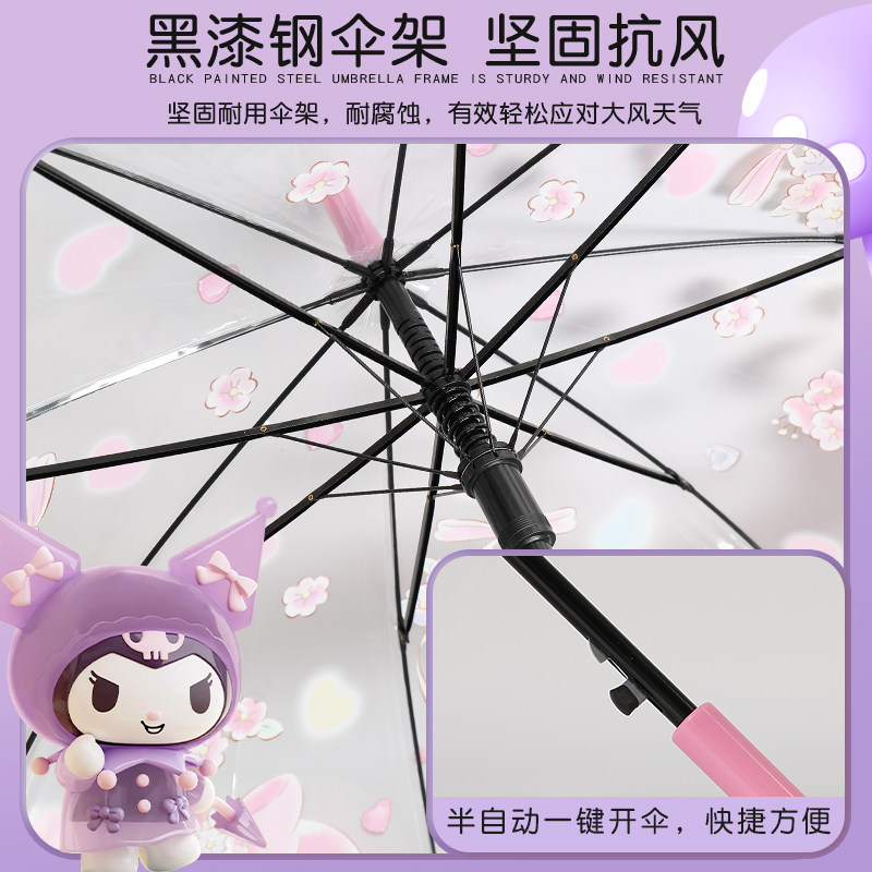 三丽鸥正版儿童透明雨伞库洛米女孩学生上学专用自动长柄2025新款