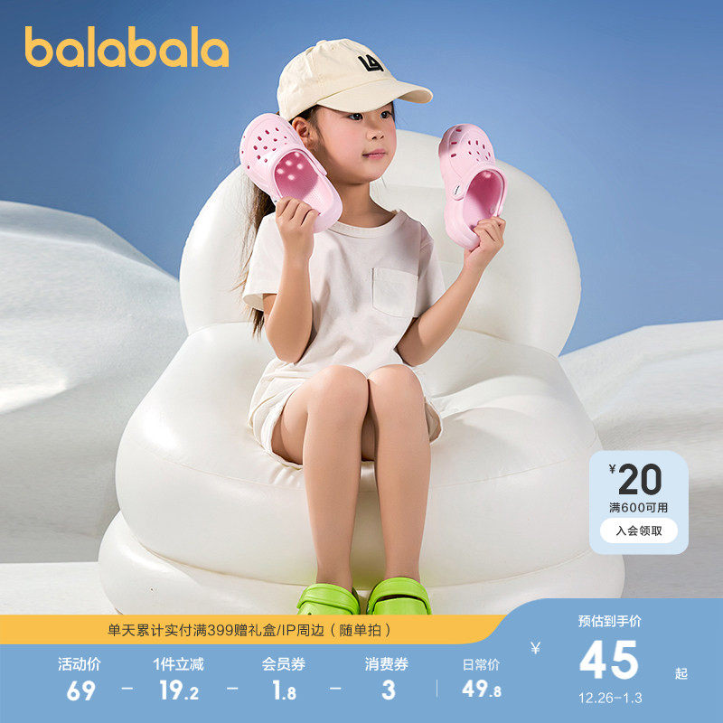 巴拉巴拉童鞋儿童洞洞鞋男童女童基础简约包头凉鞋2025春新款拖鞋