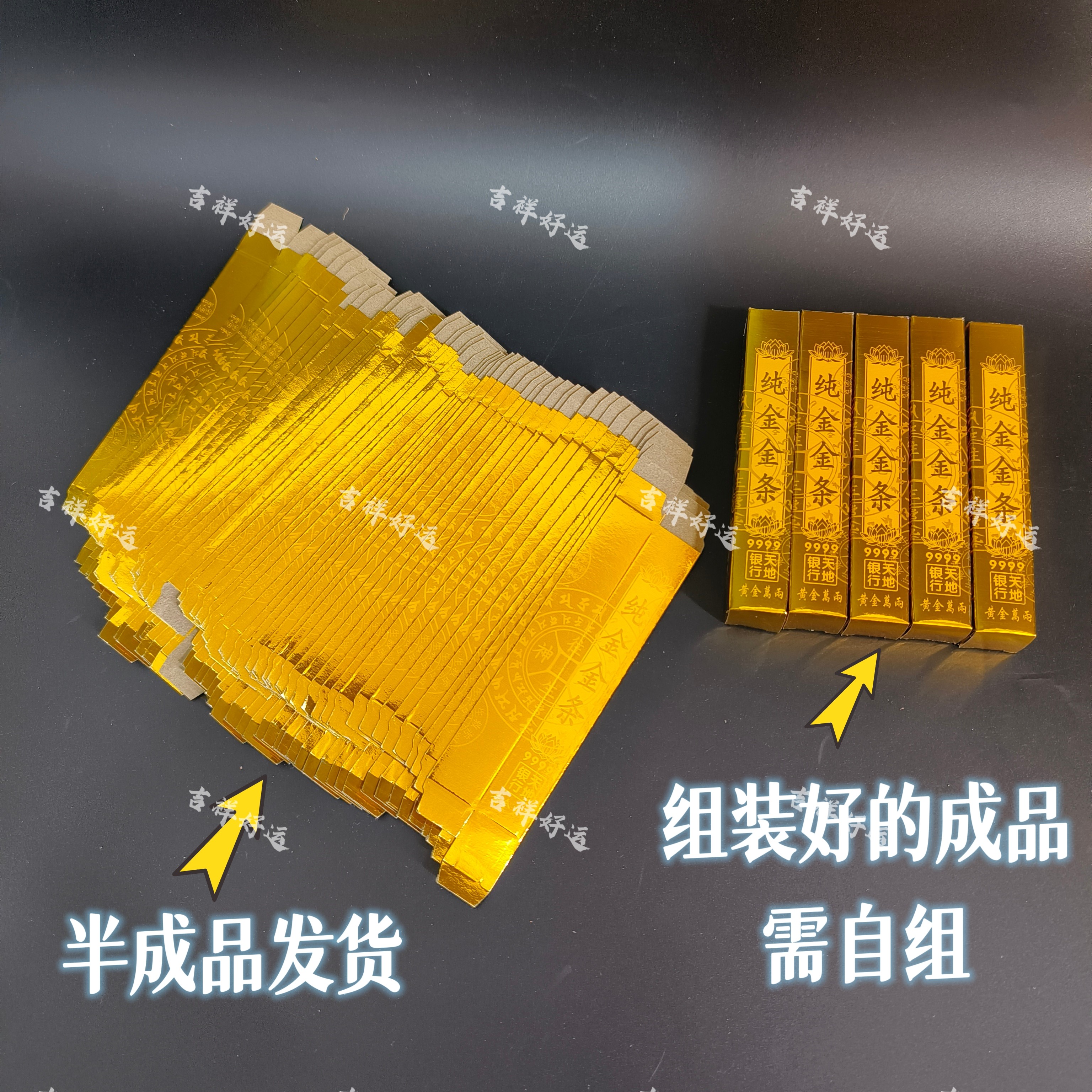 加厚高亮硬卡纸半成品小金条纯金金条折小金桶清明祭祀祈福免粘条