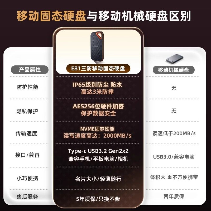 (IP65防尘防水3m防摔)读写2000mb/s