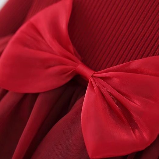 [抗菌远红外]女童连衣裙宝宝高领加绒蓬蓬网纱裙子儿童红色公主裙