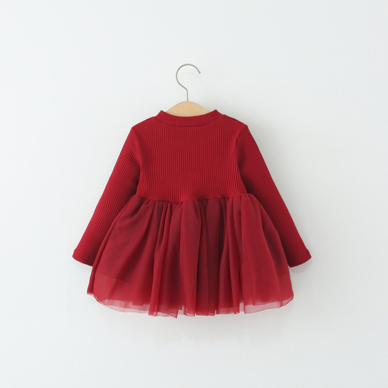 baleno junior春秋女童圆领长袖连衣裙撞色可爱时尚百搭纱纱裙子