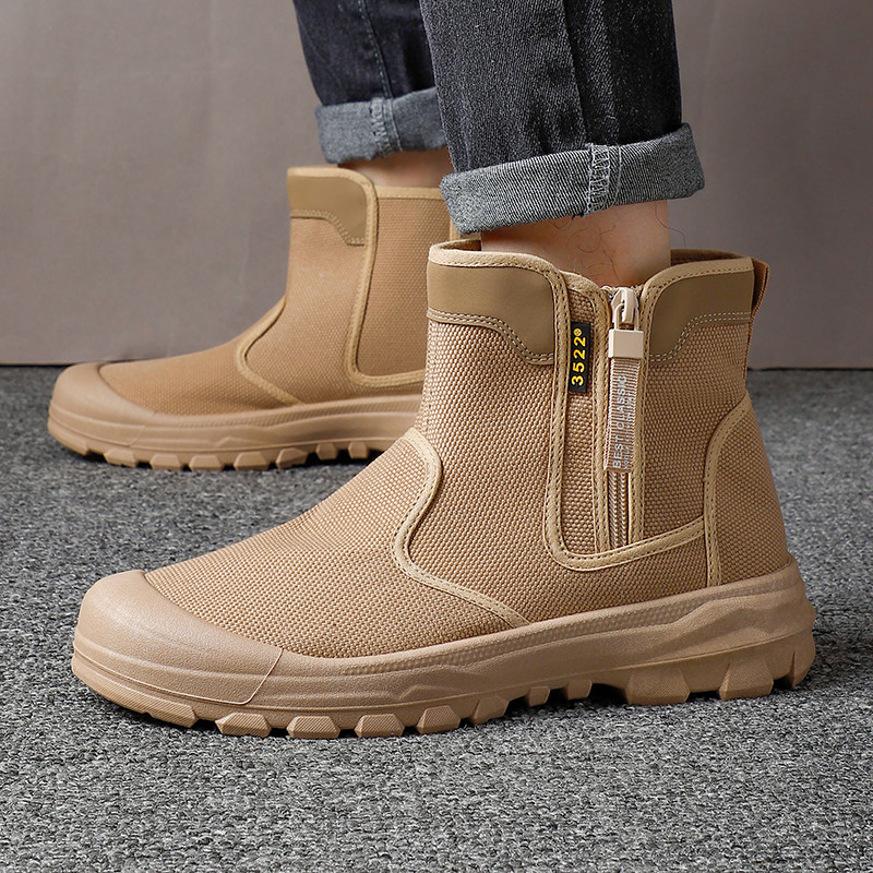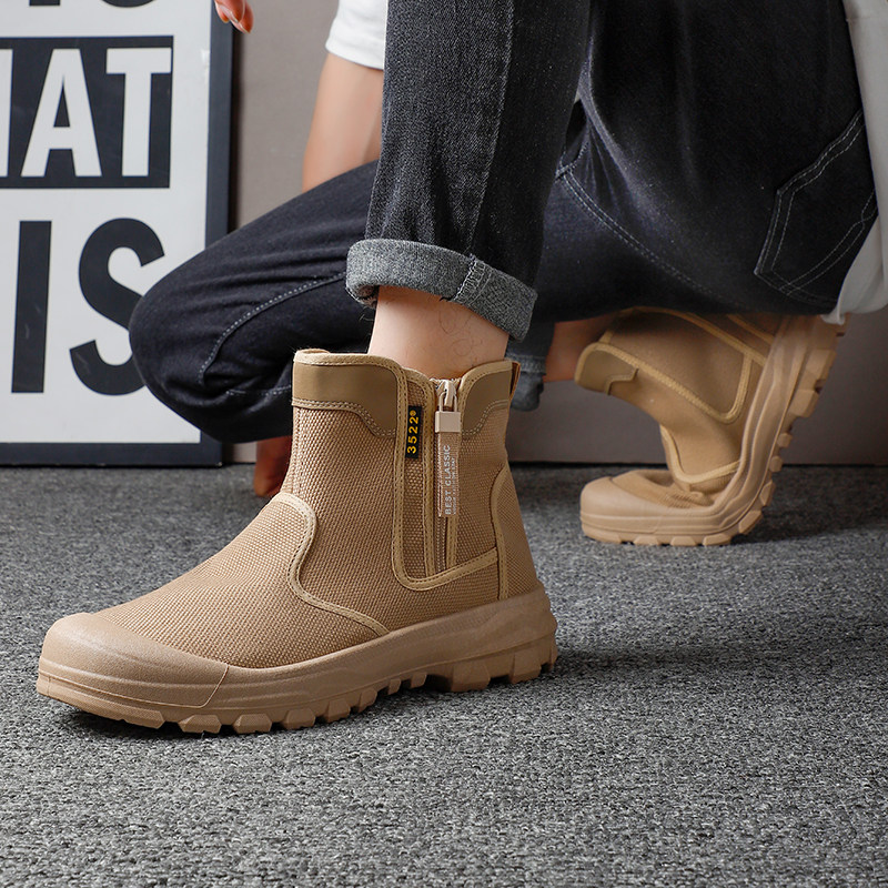高帮套筒劳保鞋男士户外登山马丁靴耐磨防滑工地解放鞋迷彩帆布