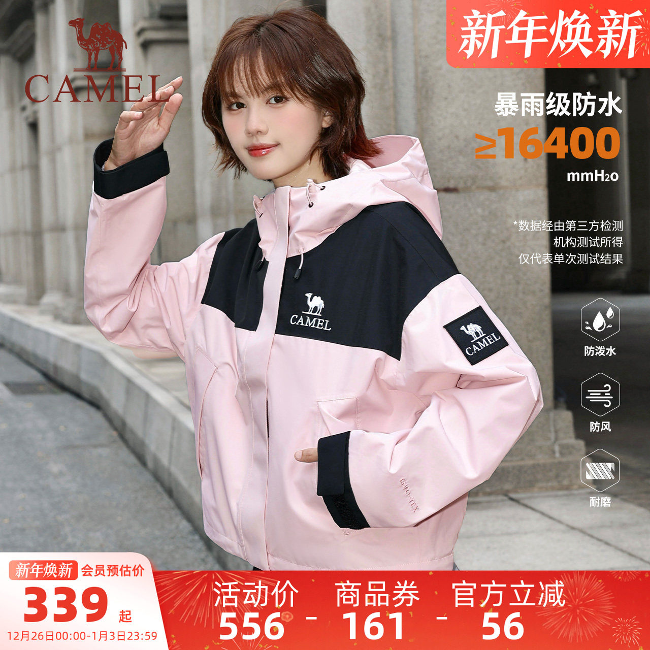 骆驼女装三防冲锋衣短款外套小个子新款夹克女户外防风防水登山服
