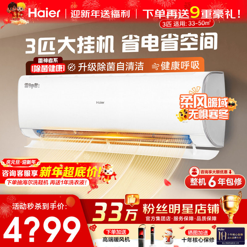 [雷神者】海尔空调2匹3匹大挂机家用一级变频冷暖用客厅KEA旗舰店