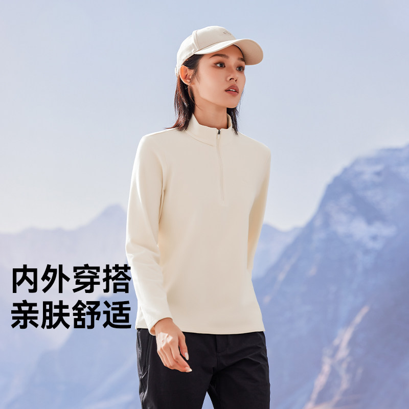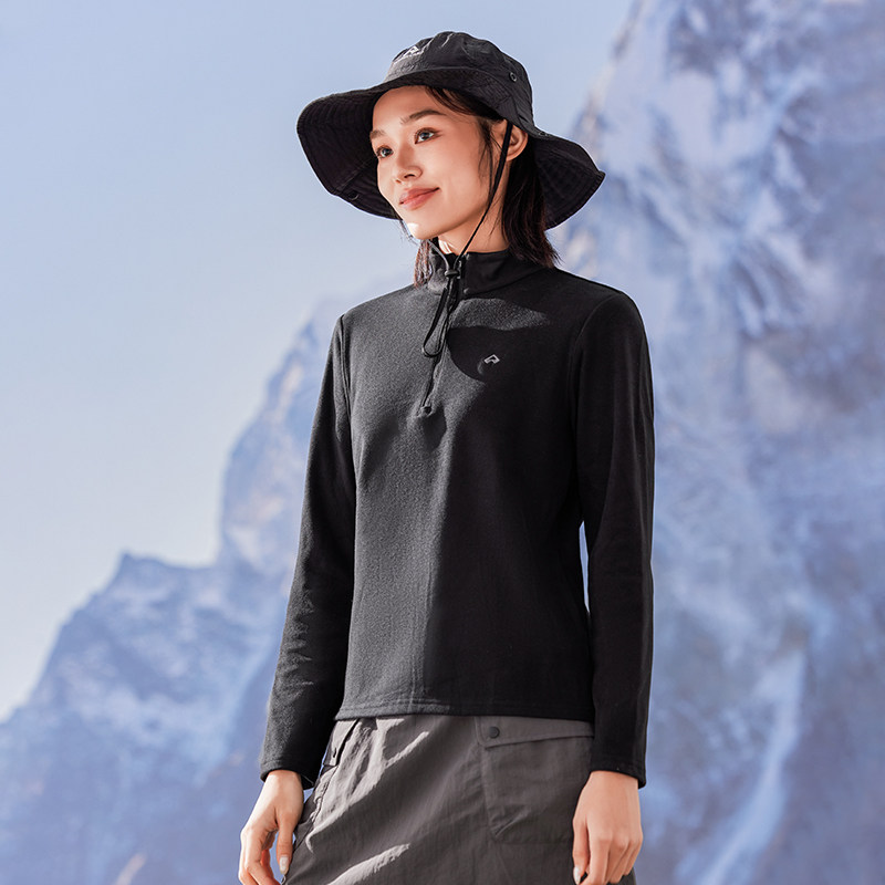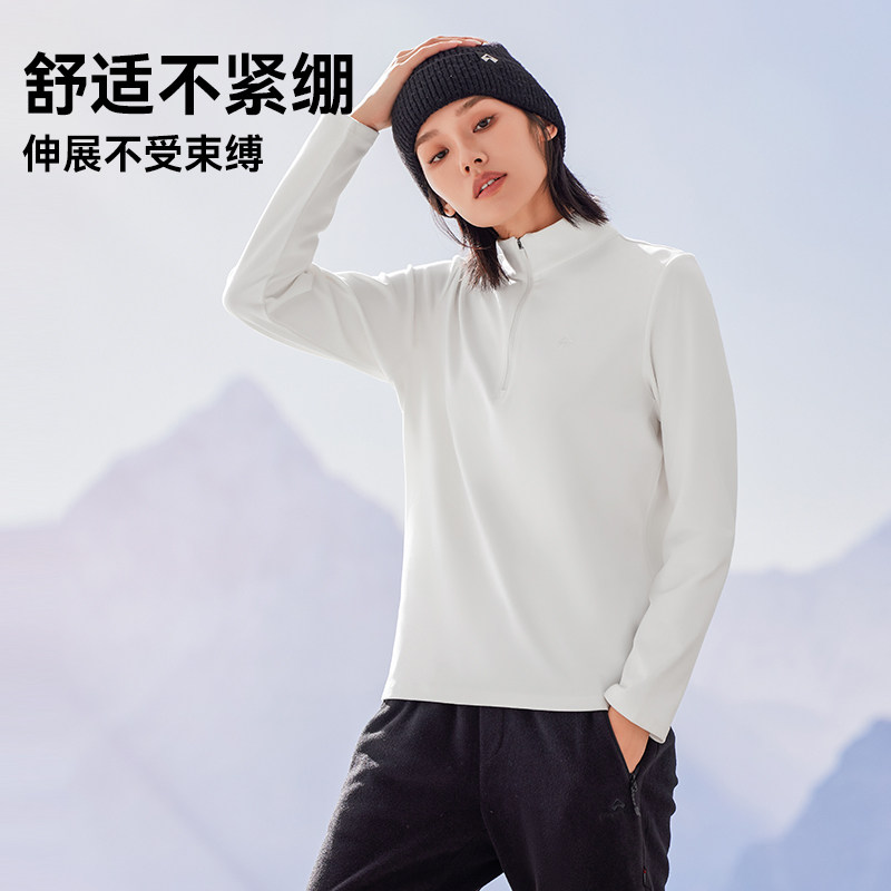 拓路者春秋款户外运动半开襟女款长袖抓绒衣保暖套头基础款打底衫