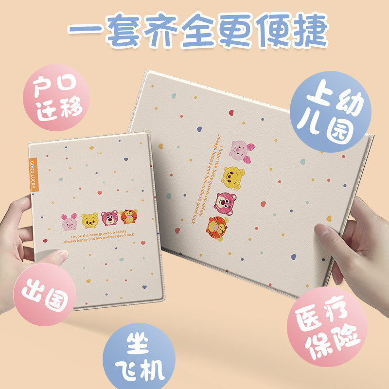 出生证和疫苗本保护套卡通小熊新版小宝宝健康证pu不粘字收纳套壳