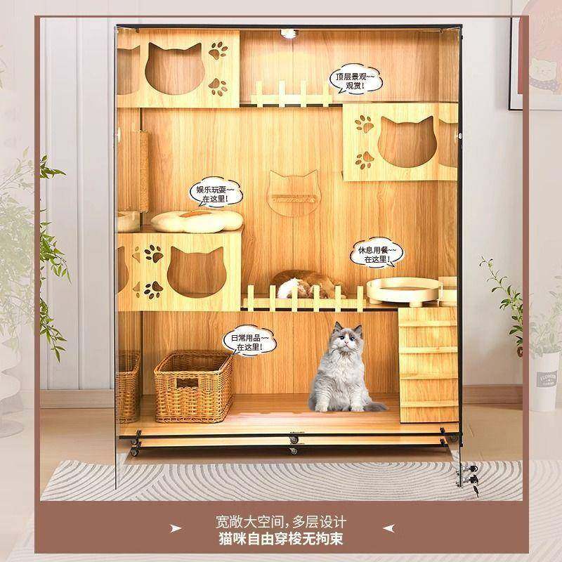 猫别墅猫笼子家用室内猫窝猫屋超大自由空间猫咪房子非实木猫舍柜