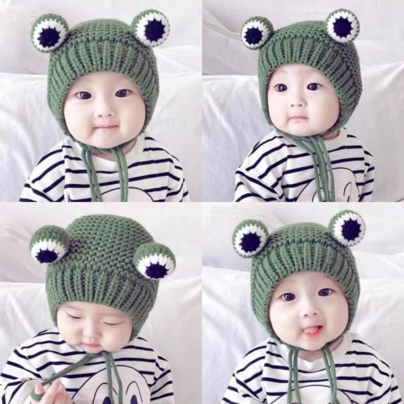 婴儿帽子宝宝秋冬保暖防风毛线帽小青蛙可爱超萌护耳儿童针织男女