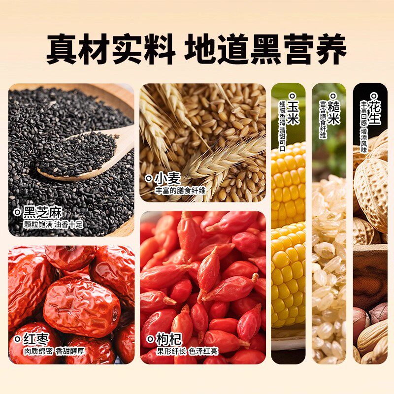 黑芝麻糊核桃黑豆代餐粉饱腹营养早餐食品即食速食冲饮黑米桑葚发