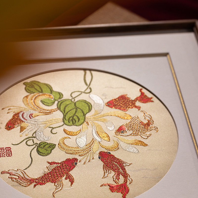 五福双宝南京云锦研究所元先九鱼图新中式装饰画玄关客厅卧室挂画